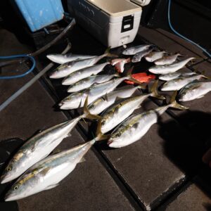 新着情報 18日ジギング便 釣果情報 2026年01月24日(土曜日) めちゃめちゃ厳しく超ランガンを繰り返し走り回っての拾い釣りでした🎵 なんとか拾い釣りを繰り返しワラサ10本、ヒラ4本、ネリゴ2本、ハガツオ2本、レンコ2枚、チカメキントキでした🎵 ご乗船ありがとうございました🎵 17日ジギング便 26日ジギング便